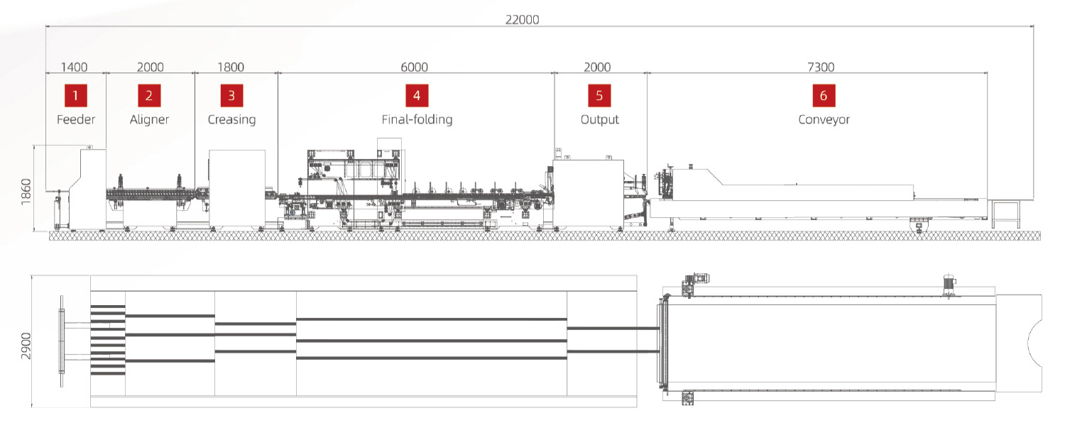 - Left and right inflection belts by independentservo drive, the end of final-folding is equip-pedwith independent belts extrusion function.