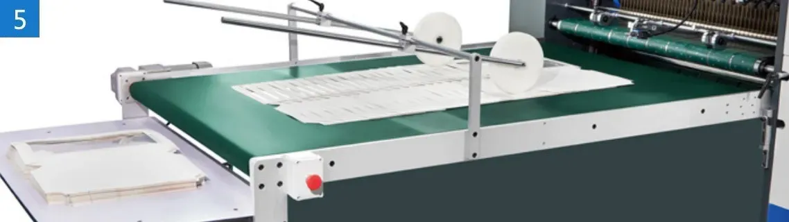 This machine used the Japan imported belt to draw out the paper from the bottom, which can continuously add paper without stopping the machine. The gap belt conveying adopts independent servo drive and photoelectric cooperation control, which does not need to set the length of paper to ensure high-speed and stable operation. Multiple conveying belts can adjust the left and right positions under any circumstances. and are equipped with a vibration motor. The belt vacuum adsorption function can also be added according to the requirements of customers.