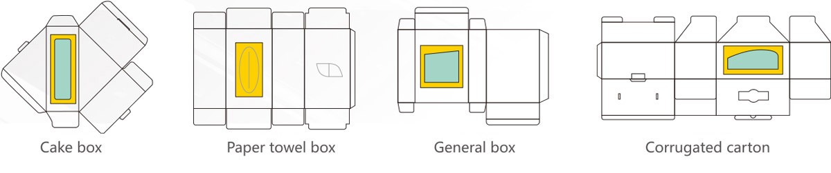 ●Intemittent Length Sitting: Suitable patching for the universal window, and also patching for the napkin box incision. For double asymmetric windows in one sheet, that can be customized according to customer requirements.