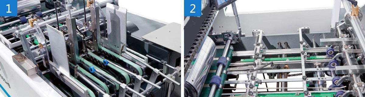 This machine used the Japan imported belt to draw out the paper from the bottom, which can continuously add paper without stopping the machine. The gap belt conveying adopts independent servo drive and photoelectric cooperation control, which does not need to set the length of paper to ensure high-speed and stable operation. Multiple conveying belts can adjust the left and right positions under any circumstances. and are equipped with a vibration motor. The belt vacuum adsorption function can also be added according to the requirements of customers.