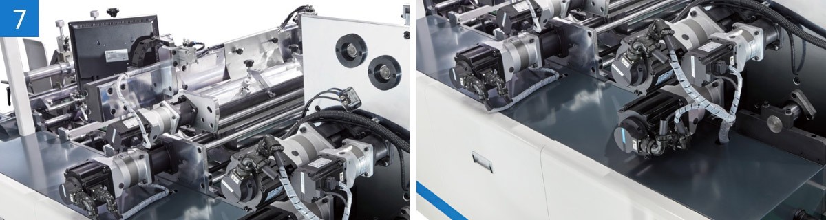 This part adopts an independent servo drive, Double row push gauge correction is adopted to ensure the stability of paper pushing. Each row push gauge can independently adjust the front and rear positions, There are 4 push claws on each row of push gauge, The installation and replacement of the push claw are very convenient and fast. A row of push gauges can be used to complete the operation of the small-size paper.