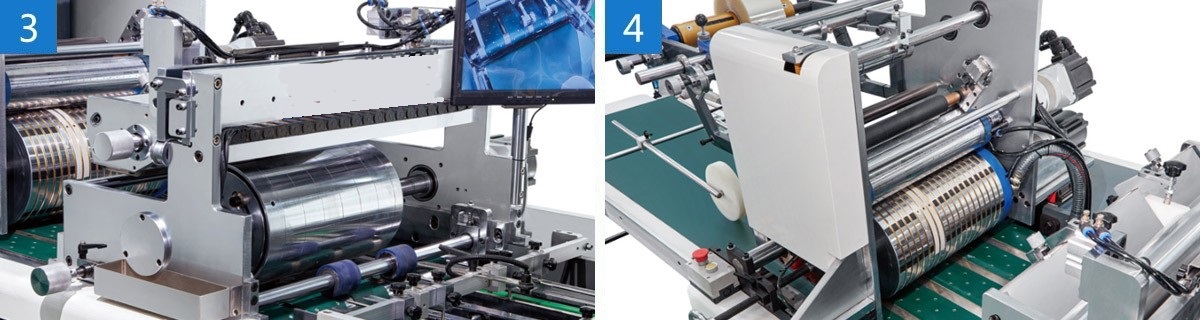 It adopts an independent servo drive and a single high-hardness stainless steel glue pipe roller to transfer glue. The thickness of glue can be adjusted according to product requirements. It adopts flexible template transfer glue. The roller on which the template is installed is engraved with a reference line, Photoelectric induction automatic gluing, The gluing part is equipped with automatic lifting. The front and rear positions of glue can be digitally adjusted in the man-machine interface, and the left and right positions of glue can also be adjusted without shutdown, Glue rollers can be pulled out in parallel for easy cleaning.